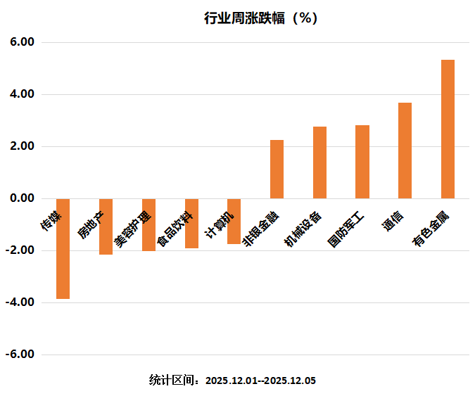 行业方面,本周申万一级行业涨跌各半,传媒、地产、消费表现萎靡,有色行业在全球金属大涨的背景下领涨市场,此外受商业航天、卫星通信持续利好催化通信和国防军工两大行业赚钱效应凸显,各指数详细表现如下: