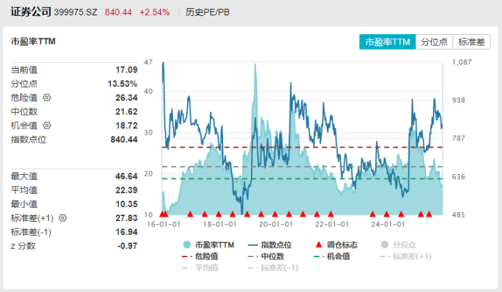 其二,低估值。以国证证券公司指数(399975)为参考,当前券商估值(PE17.09倍、PB1.47)已跌至近10年第三低和第二低水平,伴随着业绩大涨,无论是估值性价比还是股息率均凸显其投资价值。
